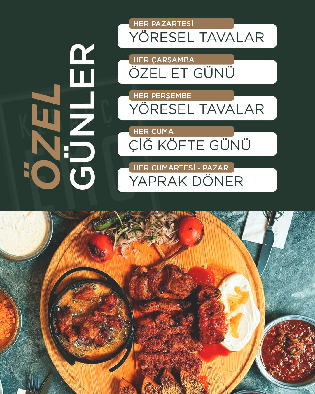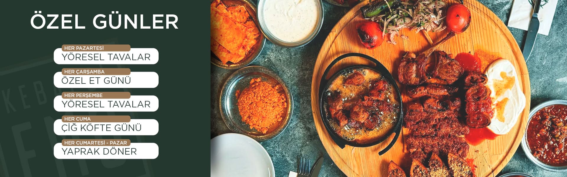 Denizli kebapçıları arasında kalite ve lezzeti bir arada sunan markamız; Adana kebap, Urfa kebap, tavuk şiş, beyti, lahmacun ve pide çeşitleriyle geniş bir menü sunmaktadır. Özenle seçilen etlerimiz günlük olarak hazırlanır ve özel baharat karışımımızla harmanlanarak ideal kıvamda pişirilir. Böylece Denizli’de gerçek kebap lezzetini arayan misafirlerimiz için unutulmaz bir deneyim oluştururuz.